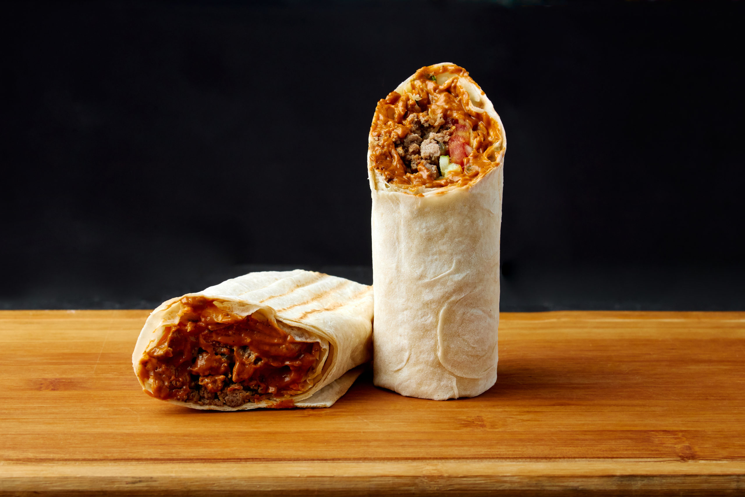 Завернутые в лаваш кусочки обжаренной баранины с салатом из свежей капусты, помидора, огурца с фирменным соусом. Обжаривается на гриле.